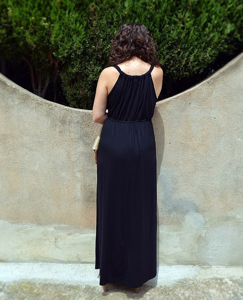 Bueno, el look que os enseño hoy es de este domingo. Salió buen día pero no podemos dejar la chaqueta en casa. Opté por un vestido largo (para llevar las piernas bien tapaditas en caso de que refrescara un poquito) y la chaqueta vaquera que siempre va bien con todo. El vestido lo compré hace ya unas semanas de C&A (este de aquí). Es negro, pero el detalle de los abalorios de colores que lleva en el escote me encantó, además lo puedes quitar y utilizarlo de collar, lo cual me parece genial! El vestido es muy cómodo y tiene muy buena caída, además queda holgadito. Como complementos elegí estas sandalias que compré hace unos meses en un mercadillo (estoy muy contenta con ellas, son comodísimas) y un bolso de rafia.