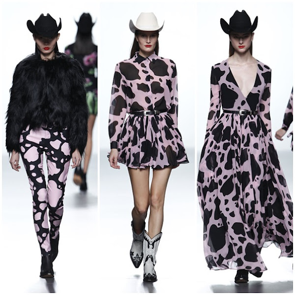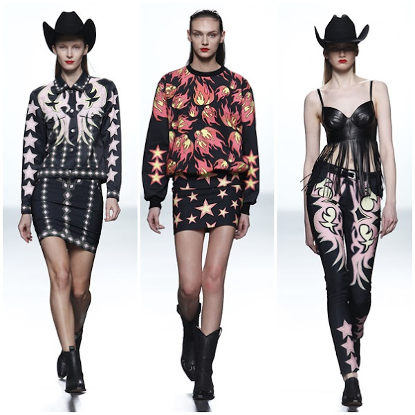 MARÍA ESCOTÉ, en su colección "Far Love" se pudieron ver camisas cowboy, cazadoras denim, flecos, piel de vaca y un sinfín de referencias al lejano oeste, temática en la que estaba inspirada su colección.