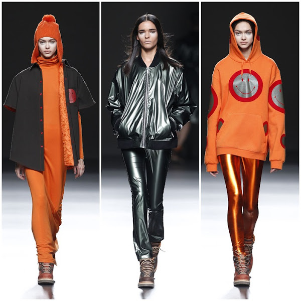 CARLOS DÍEZ, presentó su colección "Run Baby Run", una colección con una gama de colores neutros como el gris o el negro que se rompía con tonos más vibrantes como el naranja. Destacar su colaboración de nuevo con la firma Smiley.