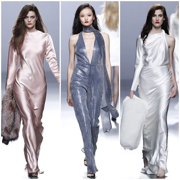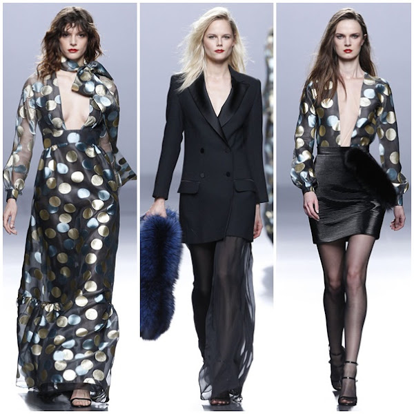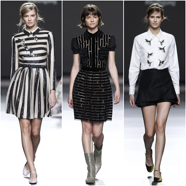 ANA LOCKING: "Antihéroe". Una colección en la que se rinde homenaje por un lado a David Bowie y por otro al Pato Donald y en la que se pueden encontrar vestidos de gasa y encaje, bombers, lentejuelas y piezas de sastrería. Destacar comos siempre los bolsos y el calzado de la firma ACOSTA con la que Ana Locking colabora.