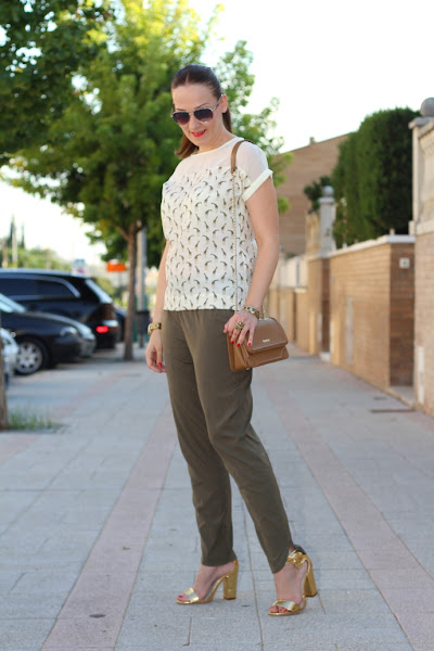 Reconozco que me encanta ir de shopping ya sea online o en tienda directamente, además, como ya os he contado alguna vez, una de las cosas que siempre hago cuando estoy de vacaciones es perderme por las tiendecitas de barrio de los lugares que visito. El top de jirafas que os enseño hoy fue una de las compras que hice en Paris durante mis vacaciones de este verano. Había visto un top con este estampado en España que me gustó mucho pero no lo puede comprar porque no estaba mi talla así que cuando vi este con el mismo estampado me encantó y no pude evitar llevármelo. Combinado como lo llevo hoy con los pantalones caqui y las sandalias doradas es como más me gusta.
