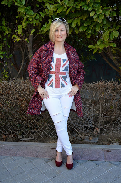 No es que sea yo de llevar muchos símbolos ni banderas, pero siempre me ha gustado todo lo que respira british. Y, como véis, sale un poco el sol, y me he vengo arriba rápidamente. Este abrigo, fue una compra de última hora el año pasado en Zara, un chollazo...
