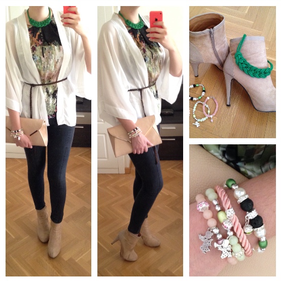 El kimono blanco le da un toque de elegancia enorme, aún siendo un conjunto ideal para diario. En este caso, he utilizado un cinturón finito que entalla la cintura (yo soy muy de cinturones), pero en la siguiente foto, podéis verlo sin cinturón y queda igual de estupendo. ¡Esta temporada no podréis estar sin kimono! Es una prenda súper versátil, yo éste me lo compré en primavera y estoy contentísima con él.