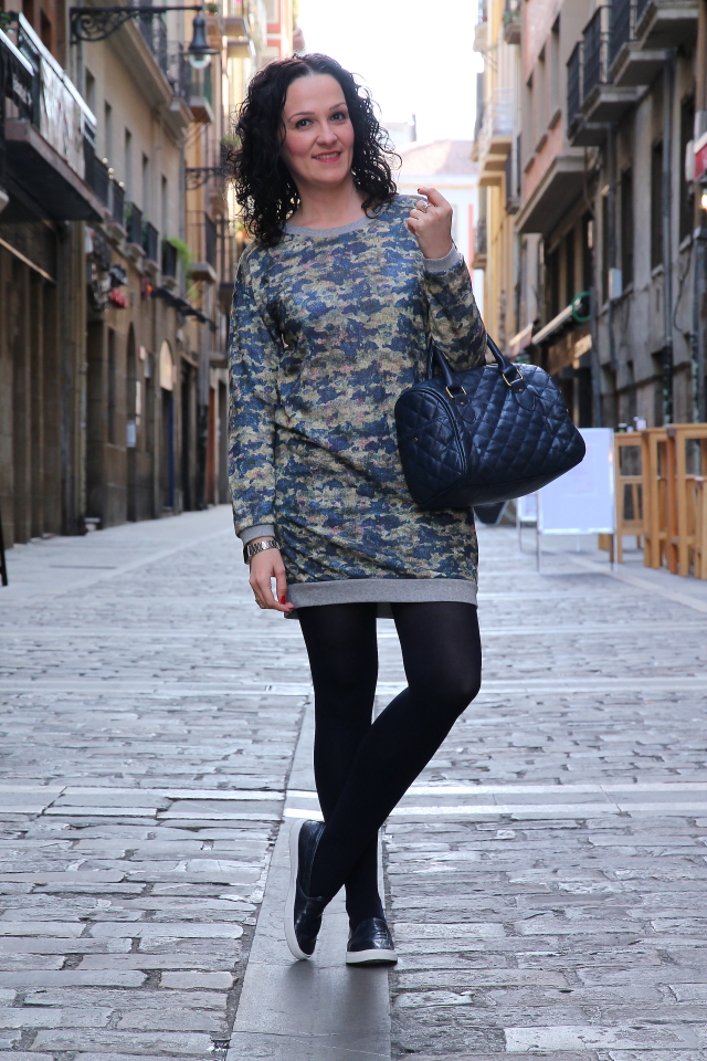 Ya sabéis que me apasiona viajar, es más todos los años nos gusta hacer un viaje fuera de España. Este año el lugar elegido fue Japón y la verdad es que me encantó, de todos los lugares que he visitado es uno de los que más me ha gustado. Pero aunque me gusta salir fuera del país para conocer diferentes culturas, España me encanta y también me gusta disfrutar de ella. Hace unos días con mi marido nos recorrimos el norte de España y aunque ya lo conocía me volvió a enamorar. Si no habéis estado os lo recomiendo tanto por sus bonitas costas como por sus gentes, y como no, por su buena cocina. El primer día para no hacer mucho recorrido de tirón paramos en Pamplona. Había pasado muchas veces por delante pero nunca había estado y la verdad es que me gustó mucho. Mientras estábamos tapeando por la calle Estafeta aproveché para hacerme las fotos con el outfit que llevaba. Un look cómodo como suele ser cuando viajo, con vestido estilo sudadera oversize y slip on.