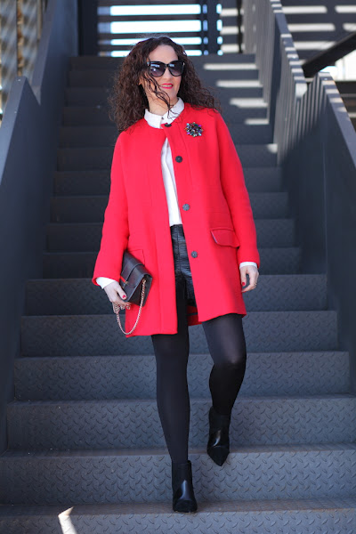 Muchas veces comentáis que os gusta como me queda el rojo a la cara, y os doy la razón, al ser tan blanquita este color me da mucha vida. Por eso mismo hacía bastante tiempo que andaba detrás de una abrigo rojo. Este invierno me probé unos cuantos pero ninguno me convenció lo suficiente como para comprarlo. Sin embargo, hace unos días ojeando la web de Zara vi el que llevo hoy, tal fue el flechazo ...