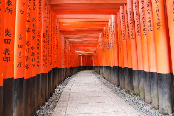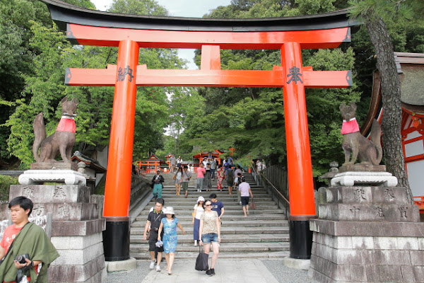 Nada mejor para empezar con ellos que mi visita a la subida de los Torii hacia el Santuario Fushimi Inari Taisha. Supongo que todos habéis visto Memorias de una Geisha, así que cuando veáis las fotos recordareis enseguida la escena cuando ella es niña y sale corriendo hacia un templo para depositar su rezo. Es tan bonito que no hay palabras para explicar lo que se siente cuando vas subiendo la montaña a través de todos esos Torii.
