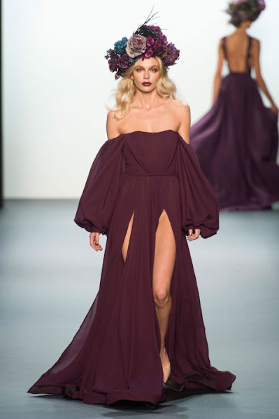 Un espectacular diseño que pertenece a la colección primavera/verano 2017 presentada el pasado día 8 de este mes durante una nueva edición de NYFW. Para esta colección, donde los colores predominantes son el violeta, el verde, el rojo y por supuesto el negro, Michael Costello se inspiró en un jardín botánico en la medianoche, de ahí que una de las características a destacar sean los bordados florales y las coronas de flores que lucen las modelos.