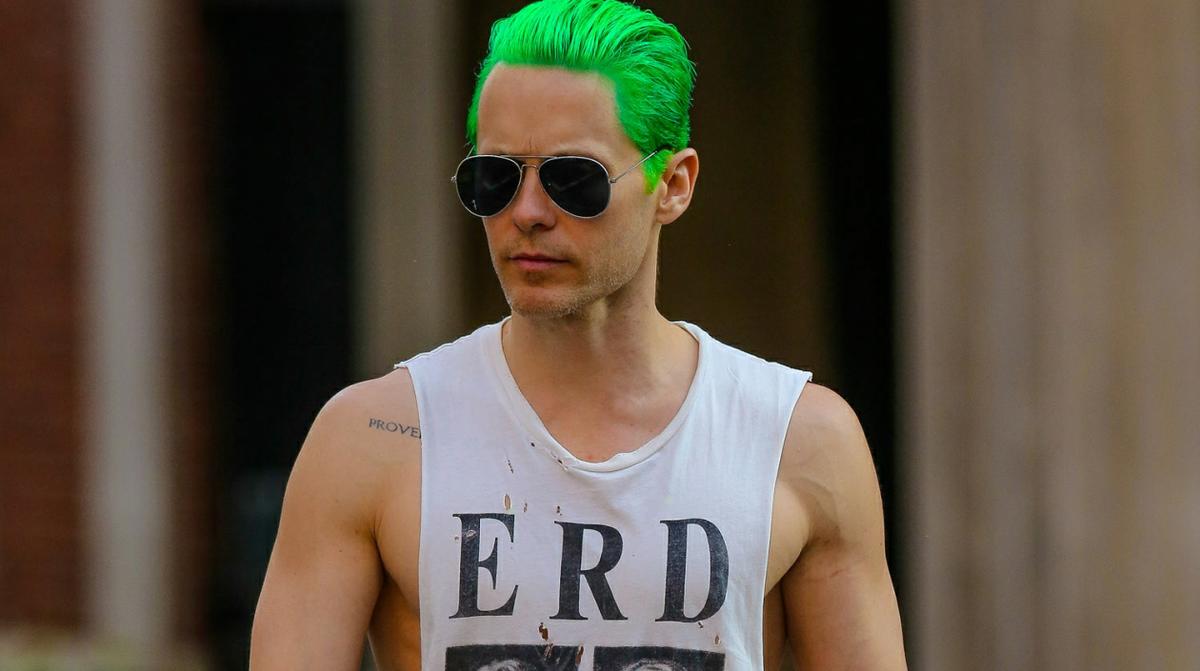 También podemos visualizar al actor Jared Leto, que tinto su cabello de color verde, con el propósito de caracterizar al Joker.