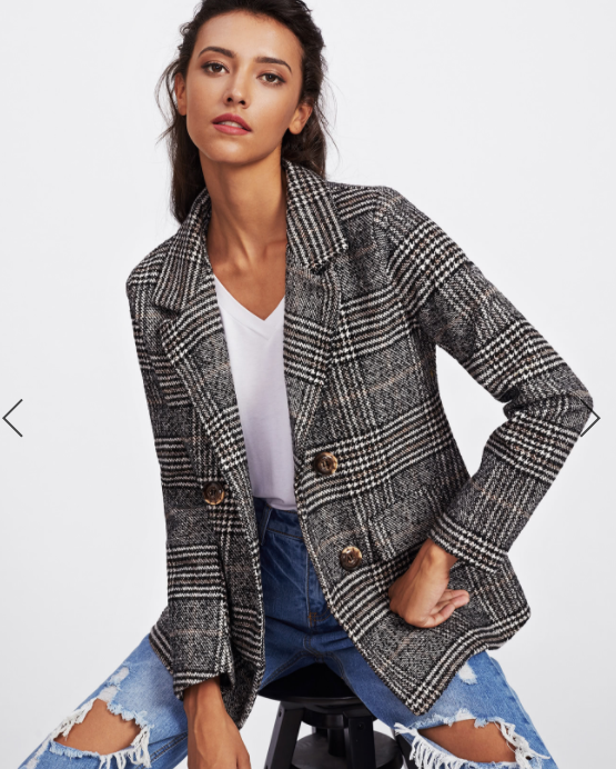 Sin duda la tendencia por excelencia de la temporada son los cuadros, así que como no podía ser de otra manera aquí van mis favoritas. Un blazer cruzado en tonos grises y negros perfecto tanto para looks elegantes y sobrios como para otras propuestas más casual. Ya sabéis que ahora todas las mezclas sirven y el contraste con zapatillas o botín militar queda ideal!