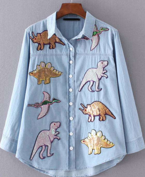 Por último os dejo con una camisa que me ha enamorada, es de esas prendas que amas u odias y en mí caso es amor total. Se que es difícil de llevar pero creo que con un outfit sencillo y básico puede quedar ideal. Además otra tendencia son los "dinosaurios" como lo oís son muchas las firmas que se han unido y podéis encontrar las siluetas de los mismo tanto en ropa como complementos!