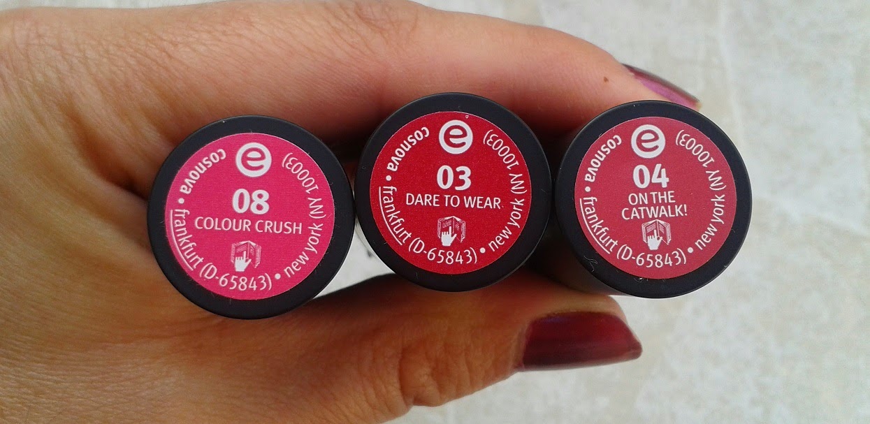Por ahora sólo tengo cinco labiales de larga duración, tres de Essence y dos de Oriflame. Los cinco me fascinan por sus colores, su textura y como no, por lo mucho que duran.