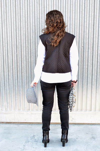 Esta semana me parece que en mis looks no va a faltar un sombrero. Con el viento que hace últimamente es una de las formas de poder el llevar el pelo suelto sin que parezcas una loca. El look que os muestro hoy es el que llevé ayer domingo. Salió un día estupendo, muy soleado y con temperaturas muy buenas, todo ello a pesar el viento. No hacía falta llevar abrigo así que opté por un look cómodo con básicos como una camisa blanca y unos pantalones negros. Para darle un toque distinto e ir un poco más abrigada me puse un chaleco acolchado con detalle de tachuelas en la parte delantera. ¿Qué os parece el mix de este look?