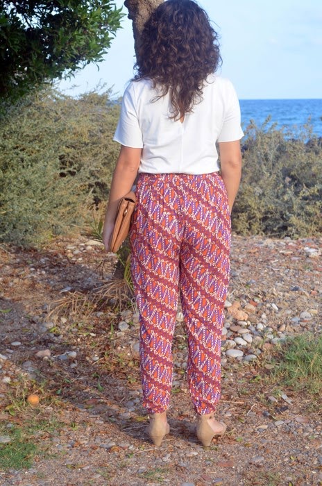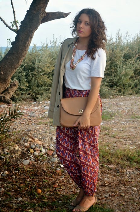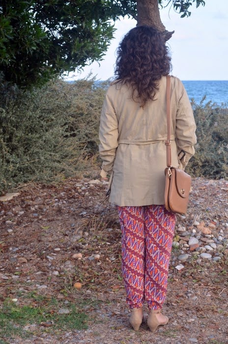¿Qué pensáis de mezclar en cuestiones de moda? Yo no soy muy atrevida la verdad...pero con este tiempo tan raro cualquiera sale decente a la calle. El otro día os comentaba sobre el boom de los trench, y es que es una prenda imprescindible esta temporada, queda bien con cualquier cosa, y sino atentos al look de hoy. Os propongo un mono de la temporada de verano, sí, es veraniego, pero sinceramente en verano pocas veces me pongo pantalón largo, por no decir que nunca, así que lo utlizo ahora este "veroño". Como es muy colorido, en tonos naranjas y lilas, lo he combinado con sandalias y bolso en colores neutros para no quitarle protagonismo. Para el frío de las mañanas y las tardes-noches, mi trench, que desde hace unsas semanas me acompaña casi todos los días. ¿Qué os parece el look de hoy?