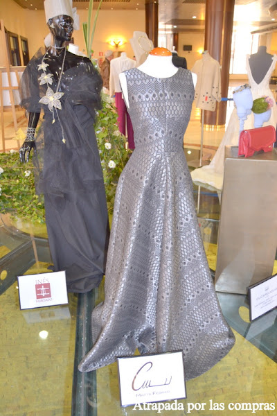 INES HURTADO con un espectacular diseño creado para la exposición, Mujer de acero y MARTA FERRAO con un vestido brocado de su colección Áurea para este otoño/invierno
