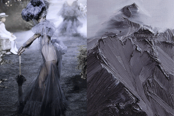 Christian Dior Haute Couture Fall 2005 | Between Heaven and Earth (series) by Conrad Jon Godly, oil on canvas