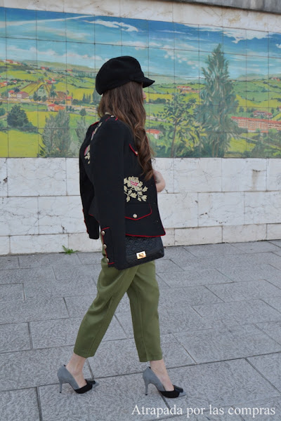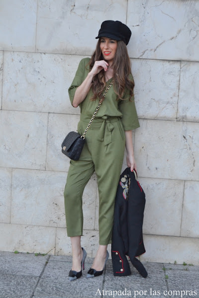 Hace un par de meses os hablaba en otro post de la tendencia del boiler suit o lo que es lo mismo el mono de trabajo reconvertido y hoy os enseño un look que sigue, en cierta medida, esta tendencia. Se trata de un mono verde caqui, sin duda uno de los colores de esta nueva temporada, con escote en V y cinturón, me recordó un poco a la tendencia que os comento del bolier suit. Lo combiné con una chaqueta militar bordada, si no tenéis aún una chaqueta de este estilo ir pensando en haceros con una porque van a ser lo más este otoño/invierno. Aproveché para estrenar mis nuevos zapatos de PARES PERFECTOS, son ideales y además super cómodos, os habéis fijado en la suela?