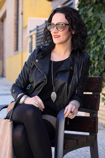 Esta semana llegó a casa esta chaqueta estilo biker de Rosewholesale y no he podido esperar a estrenarla. Hacía tiempo que me apetecía una biker negra pero tenía claro que la quería diferente, por eso el estilo de esta más cortita, tipo torera me encanta. La he combinado con un top negro y mis queridos pantalones de piel marrones. Para los complementos un sencillo colgante en forma de hoja, anillo con animal print y mi nuevo bolso que con la combinación de colores que tiene queda perfecto en el estilismo de hoy.