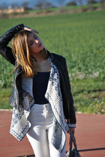 Ell día que hicimos las fotos hacía un poco de frío aún, así que a demás llevaba una chupa de piel negra, que siempre queda bien con todo y rompe un poco con los colores que predominan en el look.
