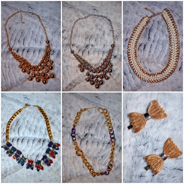 Collares parte superior: Primark / Collar flores: Mercadillo / Collar eslabones: Pull & Bear / Lazos pelo: Primark