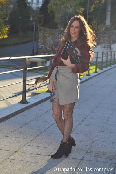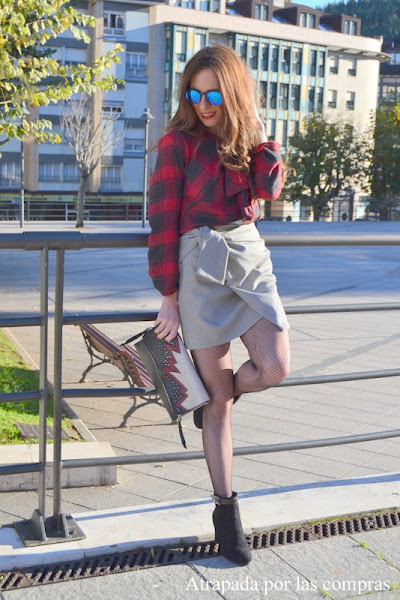 Una de las tendencias para esta temporada otoño/invierno son los nudos, pasamos de anudarnos las prendas a que los nudos formen parte de ellas. Hoy os enseño un look con dos prendas con nudo y además mezclando dos estampados muy tendencia, por un lado una minifalda con nudo y estampado pata de gallo y por otro una camisa con nudo y estampado de cuadros o tartán. Le di un toque un poco atrevido con unas medias de rejilla, creo que le dan al look un toque muy ochentero, esta temporada me estoy volviendo loca con las medias.... De calzado opté por estrenar mis nuevos botines de MODA CHIC, son super cómodos y además casan perfectamente con el estilo ochentero del look. Qué os parece el resultado?