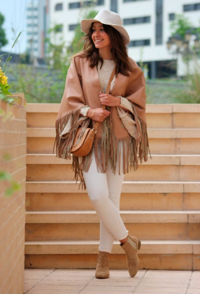 - Las capas y chalecos pisan con fuerza una vez más, me parece una opción muy estilosa para esos días en que el frío no aprieta mucho, aquí tenéis una muestra de tres looks con bases en colores beiges y tostados, ambas en un estilo casual y desenfadado para diario.