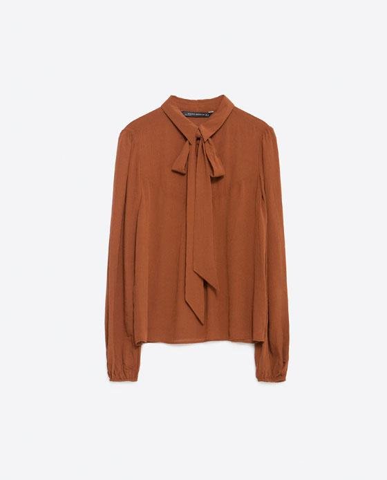 2. Blusa, una prenda muy femenina que además si le sumamos el plus de ser en un color suave y delicado como es el oak buff se convertirá en la sofisticación por excelencia, por aquí os muestro alguna propuesta. Destacar además que las blusas con lazo son otra tendencia fuerte, muy a mí pesar, pues no me gustan nada...