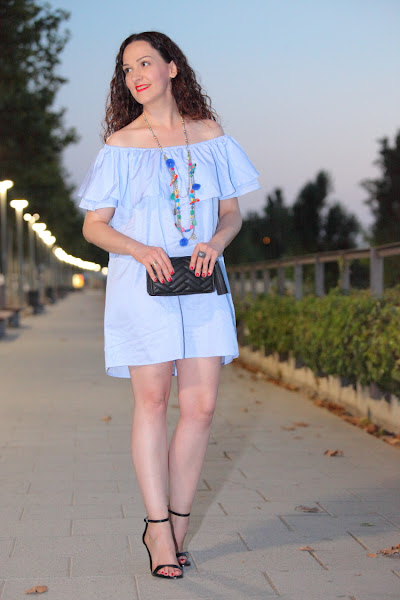 Hace un par de fines de semana fue el cumpleaños de mi marido y decidimos reservarnos el finde completo para nosotros dos. Lo exprimimos al máximo, fuimos de shopping, hicimos un poco de turismo y para terminar de celebrarlo nos fuimos de cena a nuestro japonés favorito. Para salir a cenar me decanté por mi nuevo vestido de Zaful con escote off the shoulder al que le combiné un collar de pompones multicolor.
