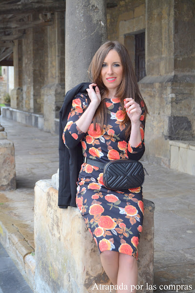 Nunca pasan de moda y en primavera se convierten en imprescindibles, los vestidos de flores son casi un básico. En el look de hoy os enseño un vestido de flores naranjas, uno de los colores tendencia esta primavera/verano 2018, ajustado, de largo midi y manga francesa, un vestido bastante fácil de combinar y de esos que podemos darle diferentes estilos dependiendo de cómo y con qué lo combinemos. Yo he sido fiel a mi estilo y lo combiné con unos zapatos de tacón naranjas y una blazer negra y como complemento estrella e indispensable esta primavera, una riñonera negra que le da un aire distinto al look. Qué os parece el resultado?