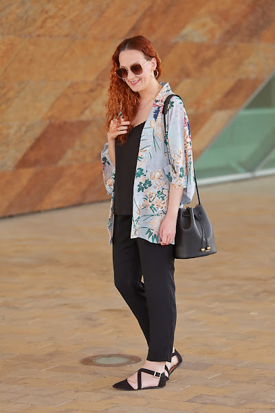 Kimono: Algo Bonito. Top: Stradivarius. Pantalones/Pants:Zara. Pendientes/Earrings: Zara. Collar/Necklace: H&M. Anillo/Ring:Tienda Local/Local Store. Zapatos/Shoes: Primark. Bolso/Bag: Mango.