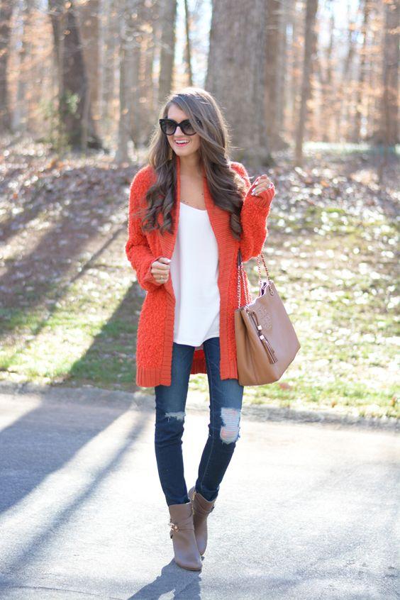 Si no quieres usar un look muy elaborado, un cárdigan bonito le dará el toque que falta a ese oufits navideño que tanto deseas. Este tipo de suéteres son los favoritos de muchas mujeres, por ser muy versátiles y ligeros. Si en donde vives la temperatura no varia mucho y no quieres estar muy abrigada, una buena idea es usar un cárdigan con una linda y ligera camisa de mezclilla, botas color gris o café y un bolso a juego.