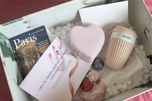 Hace poco llegó a casa una caja preciosa con motivos parisinos enviada por Pandora. Si bonita era por fuera mi sorpresa al abrirla fue aún mayor ya que contenía todo esto que veis arriba: una guía de París, un termo precioso en tono rosado, unos deliciosos macarons y una cajita en forma de corazón con una pulsera de cuero trenzado y cierre Pandora en plata, y un charm colgante Torre Eiffel con un pequeño corazoncito en Plata y Oro. Es precioso (en las fotos os lo enseño), al igual que la colección de San Valentín de Pandora de la que he quedado completamente enamorada ^_^