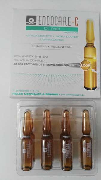 Ademas voy alternando el uso de estas ampollas Endocare - C oil free ampollas. Dejan la piel muy hidratada y luminosa. Previenen los signos de envejecimiento en nuestra piel. Esta indicado para pieles normales o grasas, yo como os e dicho muchísimas veces, tengo la piel sensible y me van de maravilla. Su precio es de 36 euros y trae 30 ampollas.