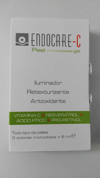 También me gusta alternar entre semanas el uso de este gel . Se trata de Endocare-C peel gel . Es un tratamiento intensivo que se puede utilizar una vez a la semana. Deja la piel muy luminosa de manera inmediata y previene y atenúa arrugas. Se deja actuar durante 20 minutos y se retira desde la barbilla hacia arriba suavemente. Yo tengo el formato que trae 5 sobres mono-dosis con 6 ml cada uno. Su precio ronda los 16 euros.