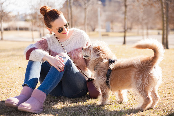 En cuanto al look, volví a recurrir a la comodidad con un bonito jersey de punto, jeans y botas Ugg.