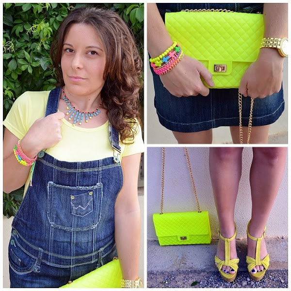 Holaa! ¿Cómo ha ido el fin de semana? El mío bastante movidito, ya os contaré esta semana en un post lo que hice el sábado. Hoy os propongo un look con una prenda denim, el peto.Y es que esta prenda noventera esta pegando fuerte este verano. Los hay con pantalones o a modo de vestido. El peto que llevó es vestido y lo tengo unos ochos años más o menos. Aunque este verano se llevan en exceso, yo lo saco del armario todos los años, me parece una prenda muy cómoda y versátil. A veces lo utilizo con bikini y otras con crop top o camisetas. En este caso he optado por combinarlo con una camiseta básica amarilla y con complementos en ese mismo color. ¿Os gustan los petos? ¿Cómo soléis combinarlos?