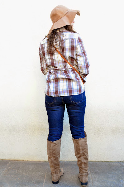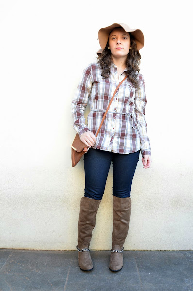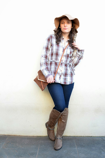 Como ya os dije el lunes, esta semana la cosa iría de sombreros. Me encantan, y es una lástima porque cuando voy al trabajo no los puedo lucir, solo lo puedo llevar de la puerta de casa al coche y del coche al trabajo, vamos unos 5 minutos jaja. El look de hoy es casual. Nada como unos jeans, una camisa de cuadros y unas botas altas, que por cierto han sido una de mis últimas adquisiciones de rebajas. No me pueden gustar más y además son comodisimas. Para darle un toque más chic opté por el sombrero de estilo años 20. ¿Os gustan los sombreros?