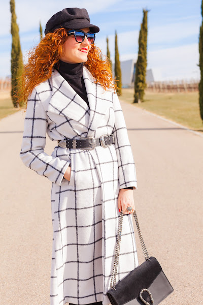 Hace un par de domingos subí a mis redes una foto con este look y os encantó. La verdad que no es para menos gracias a este abrigo blanco de cuadros tan ideal como original. Además, lo combiné con un cinturón de doble hebilla y gorra marinera que le aportaban el toque perfecto al look.