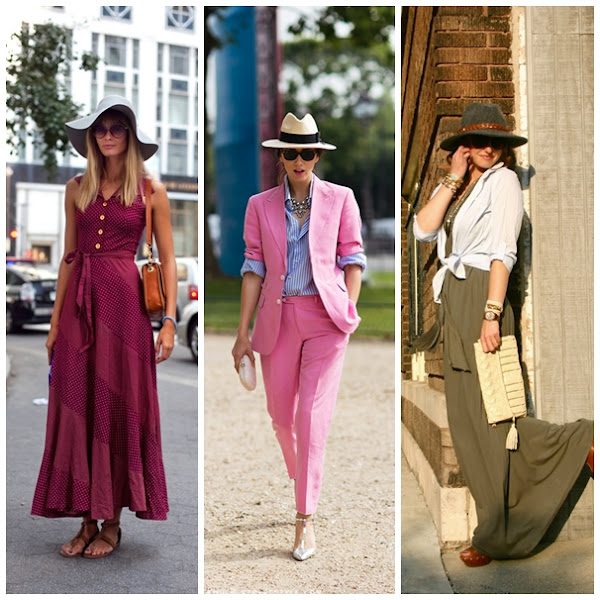 Pero donde mejor se aprecia es en la calle donde podemos encontrar un sinfín de modelos y distintas combinaciones, así que os dejo con algunos looks que pueden servirnos de inspiración a la hora de combinar nuestro sombrero de verano....