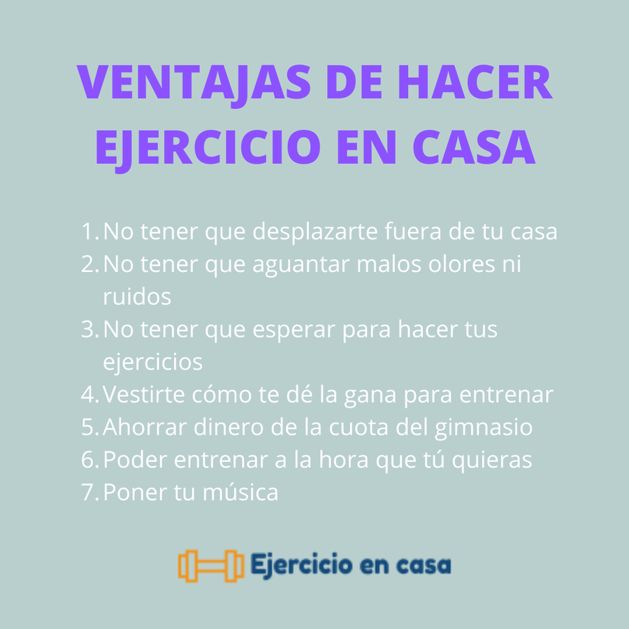 Y no es necesario tener unas máquinas complejas para cada parte del cuerpo, como hay en el gimnasio. Realmente puedes entrenar cada músculo de tu cuerpo con pocos ejercicios en los que solo necesitarás el peso de tu propio cuerpo, y algunos materiales básicos, que no ocupan casi nada de espacio. ¡Son todo ventajas!