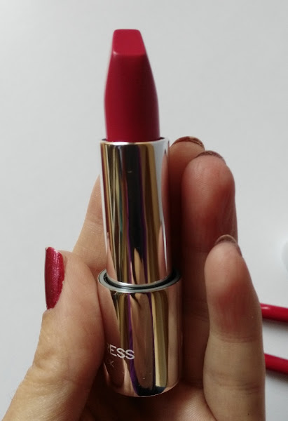 Recién aplicado queda así pero después de un ratito se ve mate. En la foto sólo llevo el labial. Cómo podéis ver, el color es una preciosidad. Lo adoro!!!