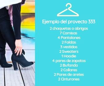 El proyecto 333 consiste en que debes elegir 33 prendas entre ellas camisas, chaquetas, pantalones, zapatos y accesorios (collares, gorros, gafas, etc) y usar este guardarropa durante los siguientes 3 meses o 1 estación del año. Para la siguiente estación puedes cambiar tu guardarropa completamente y volver a empezar con otro set de 33 prendas de vestir. Suena genial no?