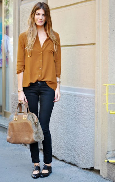 El look de hoy viernes viene de la mano de una de las prendas de la temporada, Camisa suelta efecto maxi y vaporosa en tono marrón mostaza.