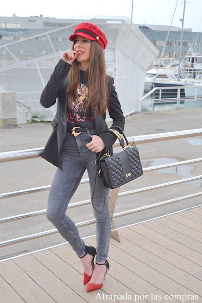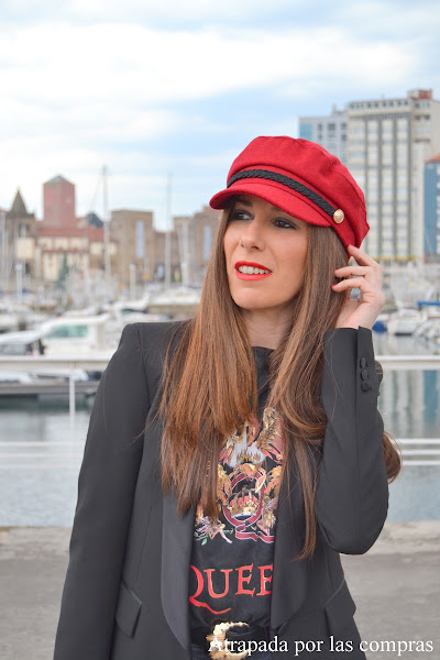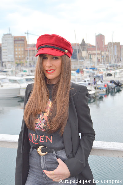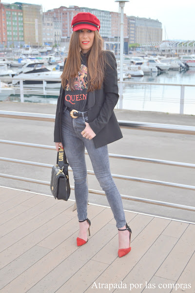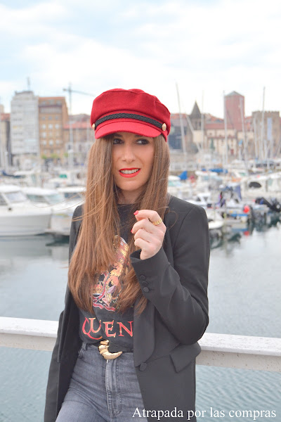 Siempre he sido muy fan de QUEEN así que aprovechando que estos dos últimos años vuelve a estar en pleno boom no me he podido resistir a hacerme con las dos camisetas que ha sacado STRADIVARIUS. Hoy os enseño la versión en negro que combinó con unos jeans pitillo de cintura alta, blazer de smoking, taconazos y una gorra roja.