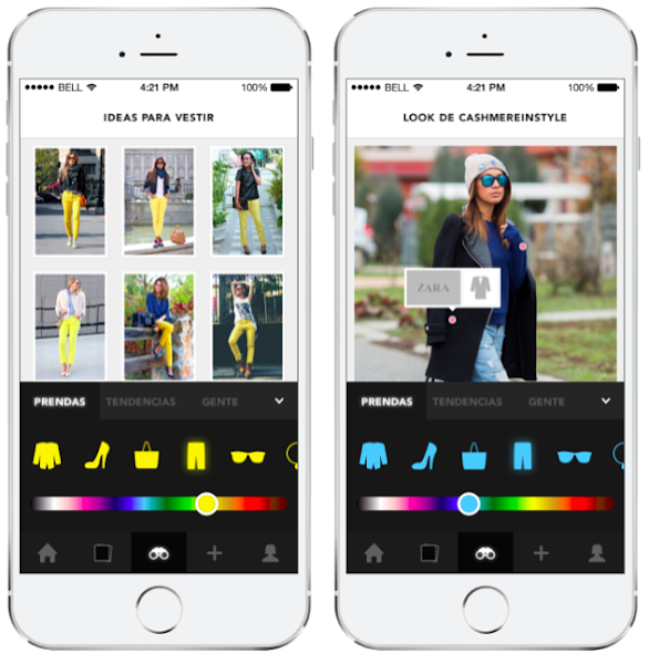 Haces una búsqueda de determinada prenda, ideas de estilo te mostrara la habitual imagen y al mismo tiempo te ofrece una galería de imagenes en las que aparecen otras personas usando esa prenda, dándote ideas de estilo y outfit.
