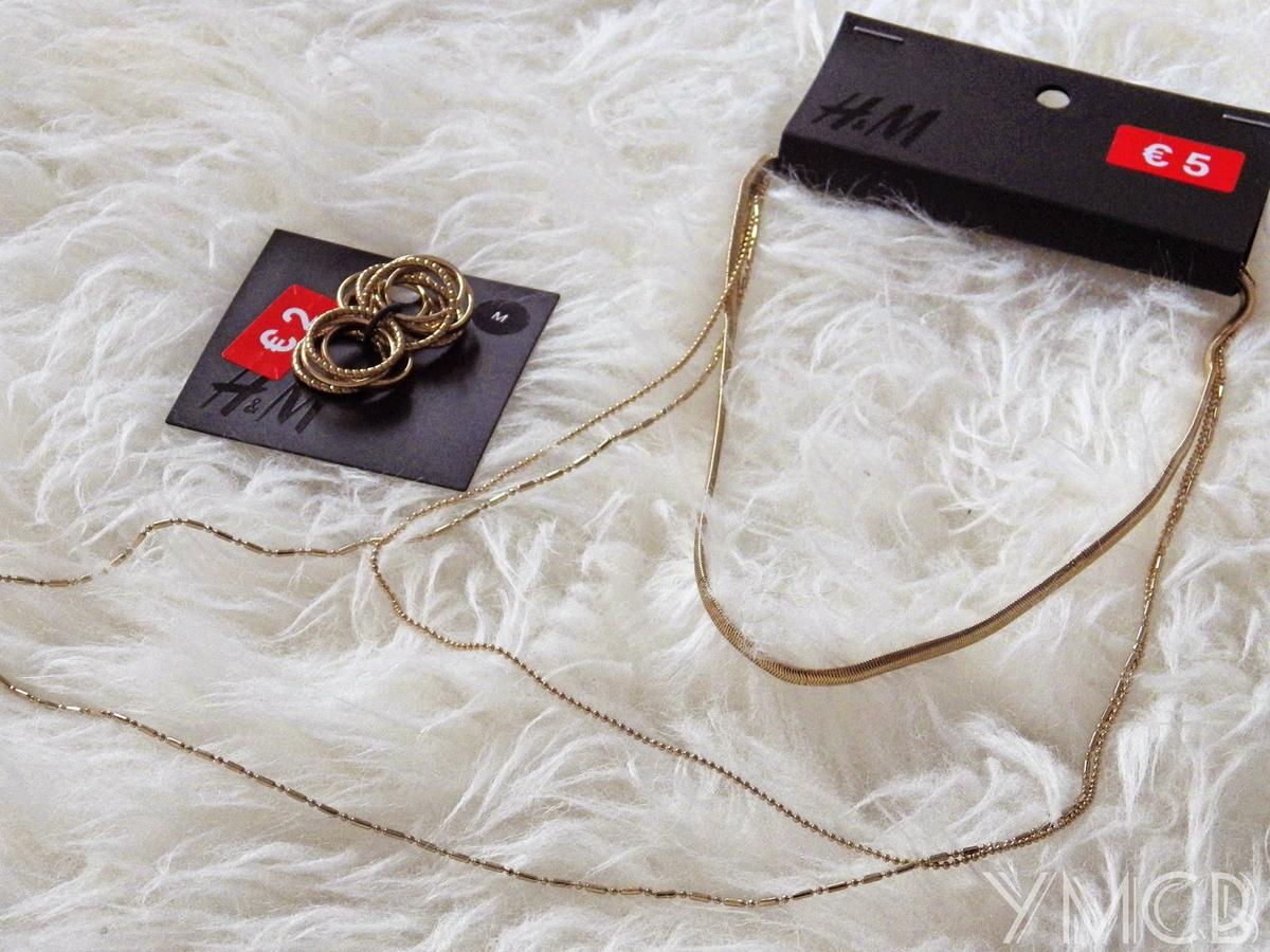 Collar de tres cadenas doradas y pack de anillos de H&M