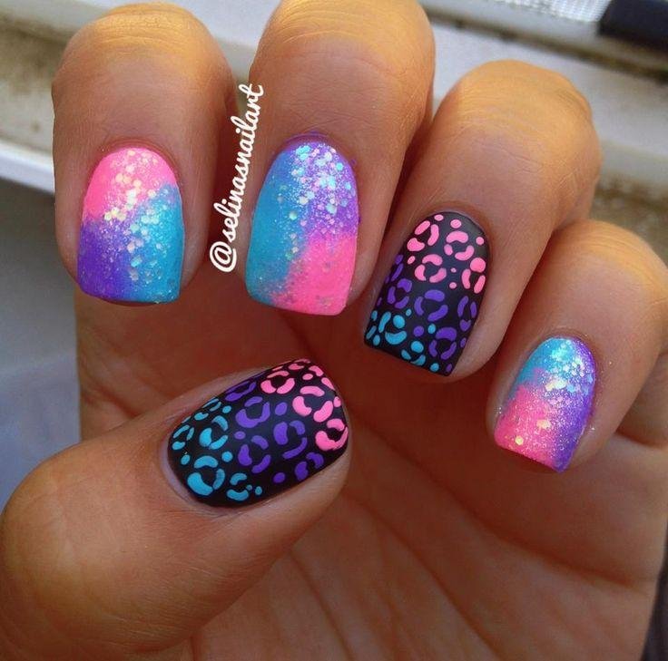 Las uñas decoradas con colores brillantes estilo neon se encontraron bastante, ya dan un actitud mucho más jovial y llamativa a nuestras uñas, eso si teniendo cuidado de no excedernos con los tonos de los colores ya que nuestras uñas pueden llegar a quedar con colores que combinaran al tenerlos juntos en nuestras uñas.