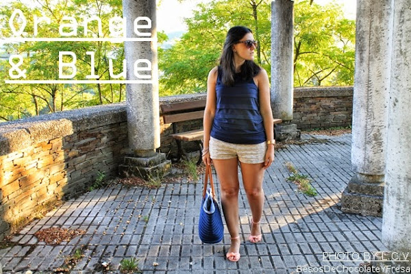 Hola!! ¿Qué tal? Hoy os muestro el look que puse la semana pasada el día del cumpleaños de mi chico para tomar algo y celebrarlo. Ademas hacia muy buena temperatura y se podia estar en las terrazas hasta tarde sin necesidad de chaqueta.Llevo shorts de color naranja y azul con camiseta azul marina y flores en las parte superior, mis nuevas sandalias del Primark de topitos y en color naranja a juego ...