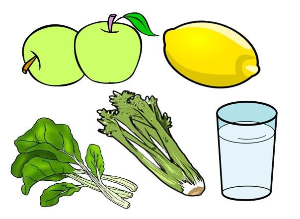 Ingredientes: Dos tazas de espinacas (hoja lavada), dos tazas de pepino, un tallo de apio, dos manzanas, jugo de un limón y media taza de agua. Combinar todos los ingredientes en la licuadora.