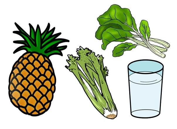 Ingredientes: 1 tajada de piña, un cuarto de taza de pepino con cáscara, un tallo de apio y una taza de agua. Combinar todos los ingredientes en la licuadora. Tomar en ayunas todas las mañanas (1 porción).
