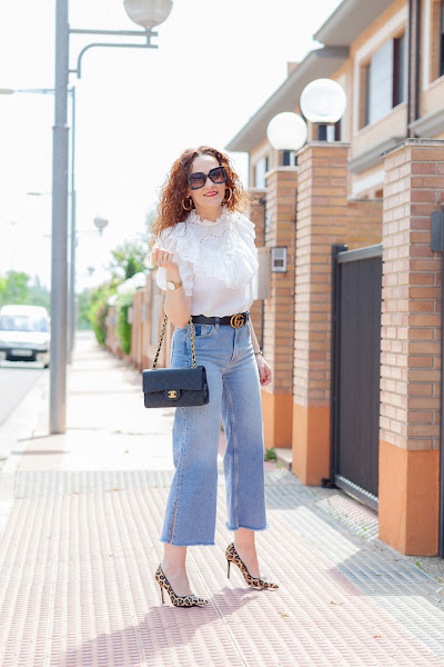 En cuanto vi esta blusa de corte romántico por Instagram supe que tenía que ser mía y no paré hasta dar con ella. Me encanta el diseño tan delcicado que tiene con el volante y los bordados del pecho, además es muy fresquita por lo que este verano la voy a poder llevar un montón. La estrené con unos jeans culotte, stilettos de leopardo y el que creo que siempre va a ser mi bolso favorito.